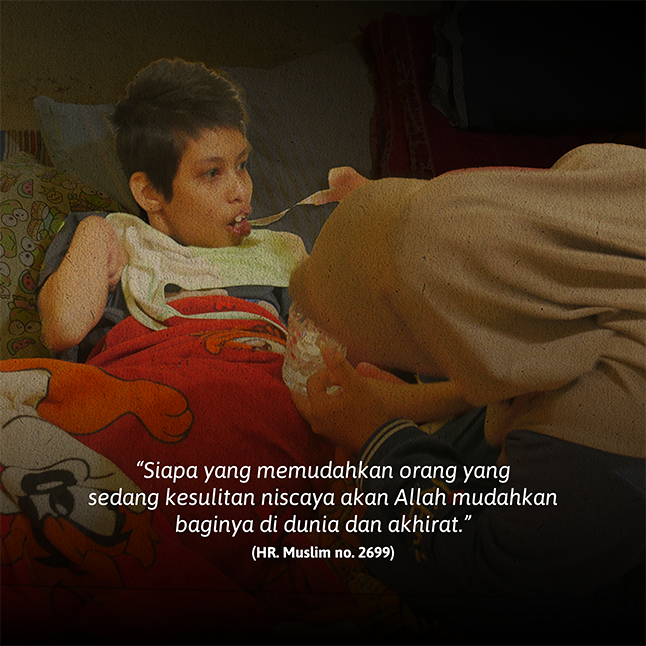 anak yang tidak bisa berdiri dan bicara padahal sudah usia 12 tahun, dulunya hanya bisa terbaring sepanjang hari di kasur tanpa bisa melihat dunia luar. Sekarang, ia telah mendapatkan kursi roda dan terapi epilepsi. Ayahnya berprofesi sebagai pengangkut sampah begitu lega karena tak menyangka anaknya yang punya penyakit berat masih punya harapan untuk lanjutkan hidup berkat orang-orang baik yang membantu.