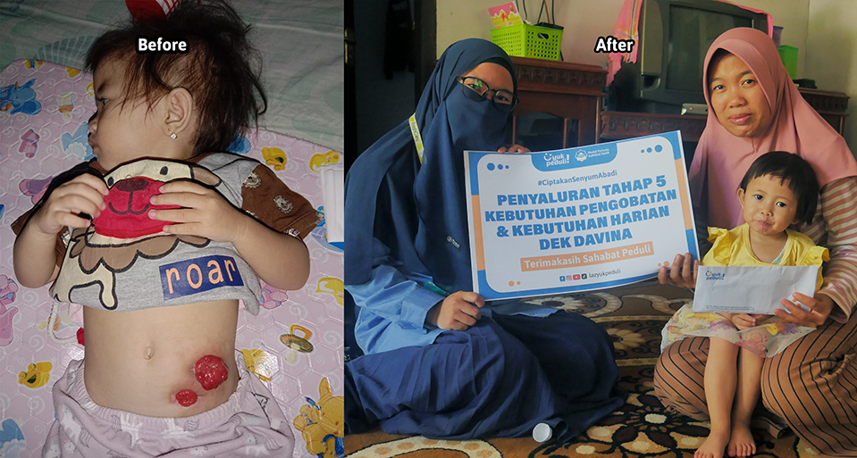 Sejak lahir, Davina tidak memiliki anus dan harus mengeluarkan kotoran melalui perut. Akhirnya sudah bisa normal seperti anak yang lain.