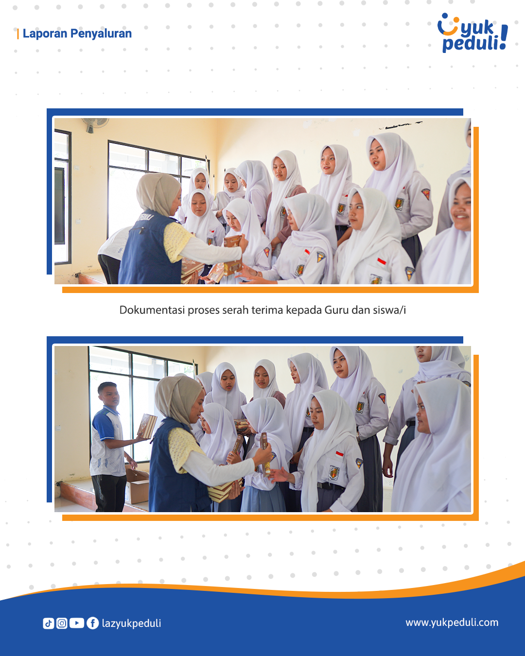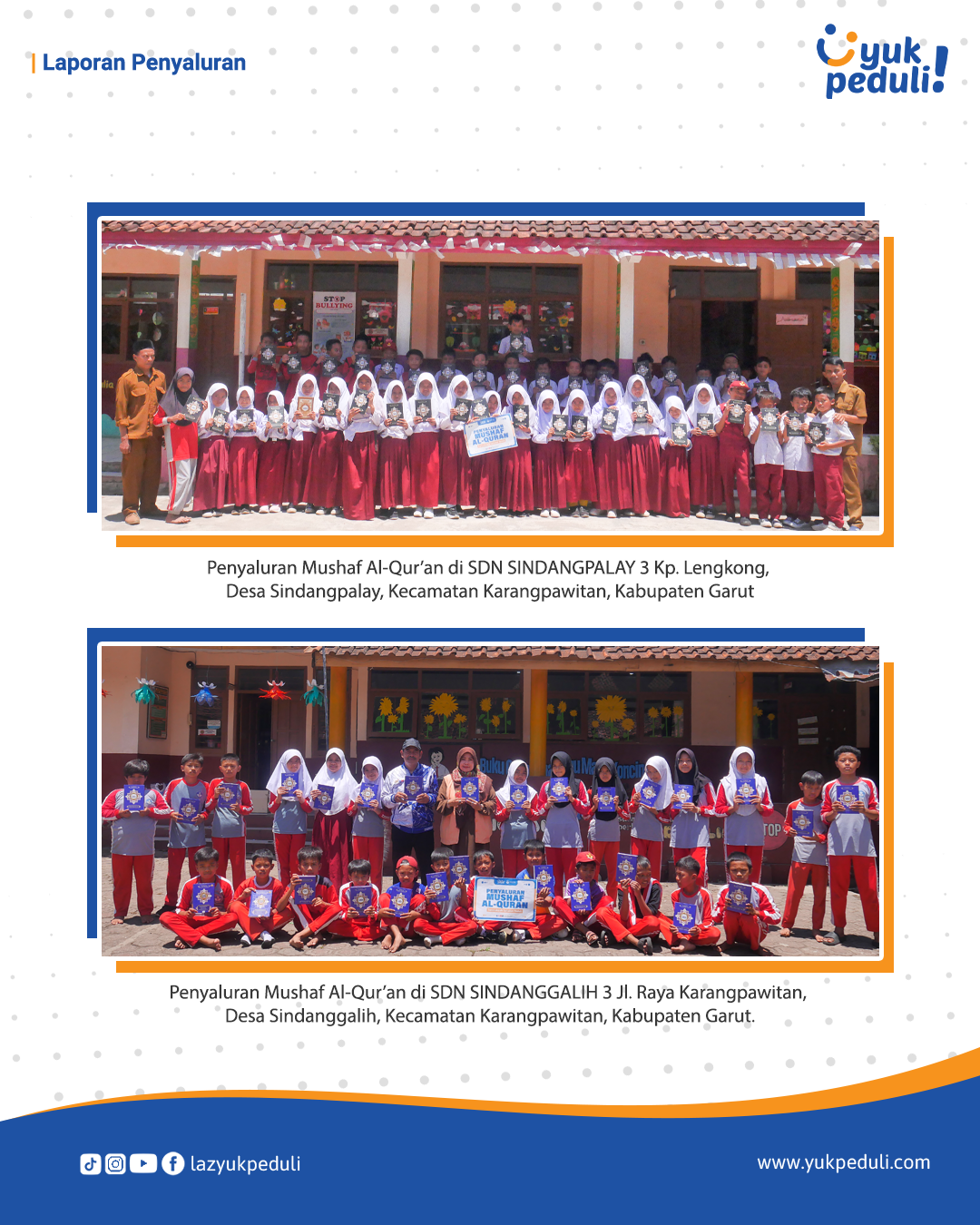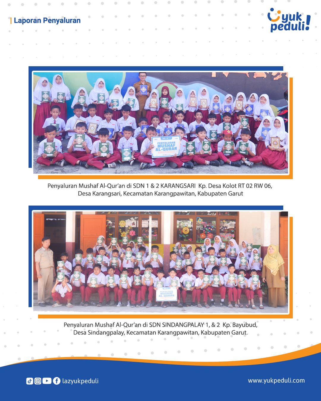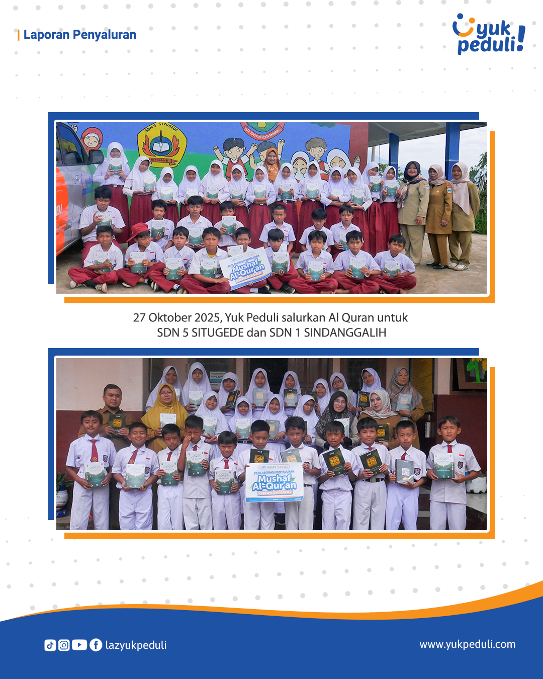 Dapatkan update dan laporan program melalui email/whatsapp yang Sahabat cantumkan. Terima kasih kami ucapkan, doa dan dukungan Sahabat Yuk Peduli sangatlah berarti.