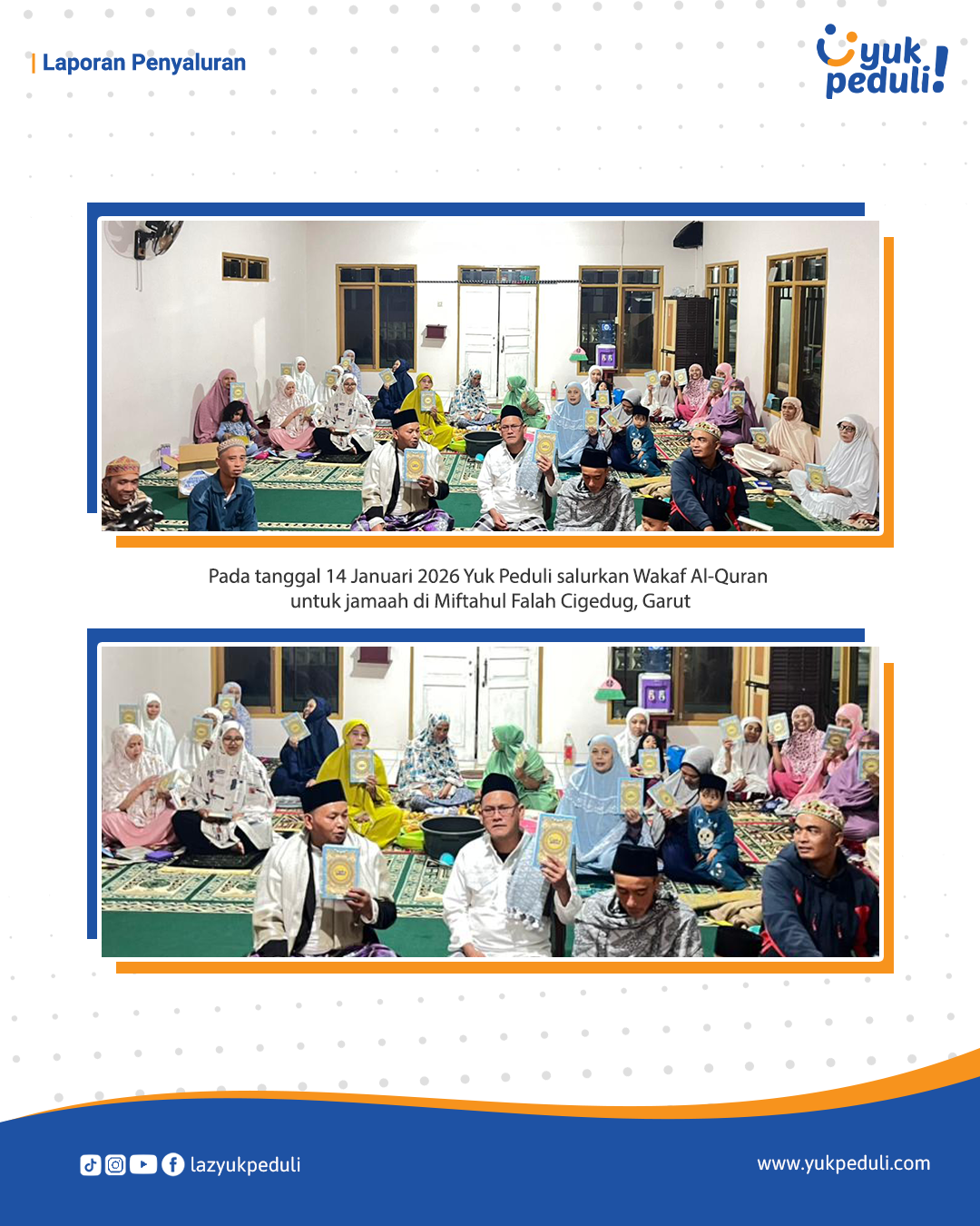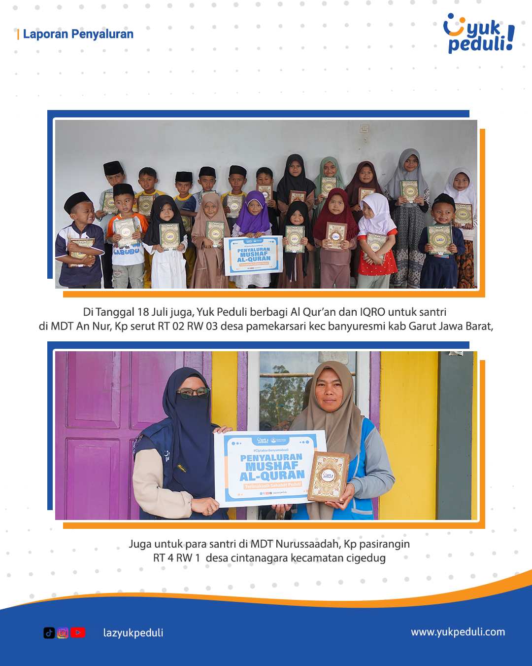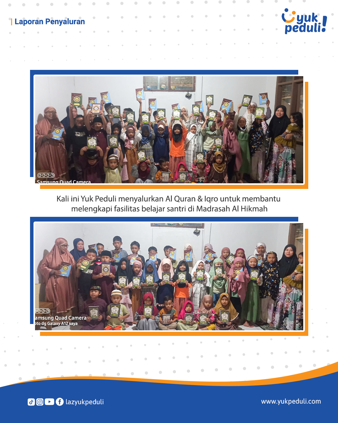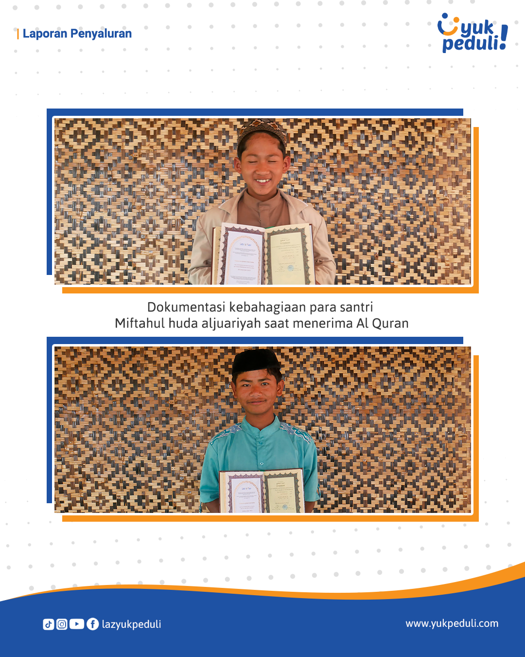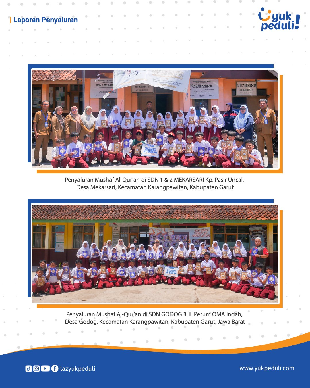 Dapatkan update dan laporan program melalui email/whatsapp yang Sahabat cantumkan. Terima kasih kami ucapkan, doa dan dukungan Sahabat Yuk Peduli sangatlah berarti.