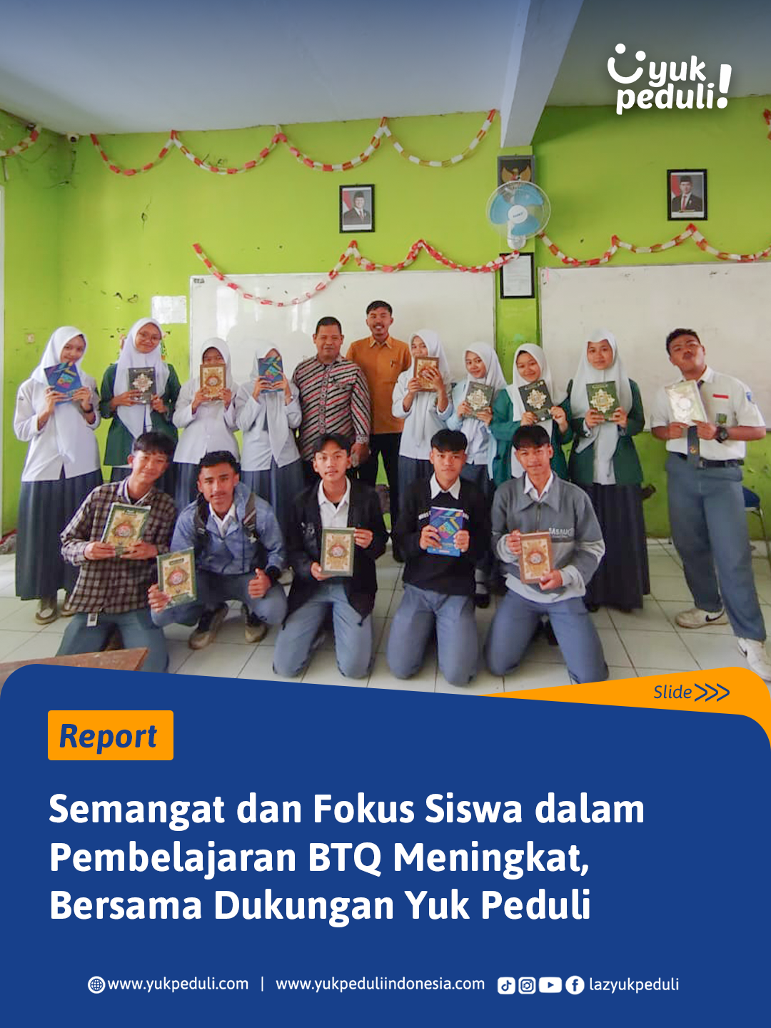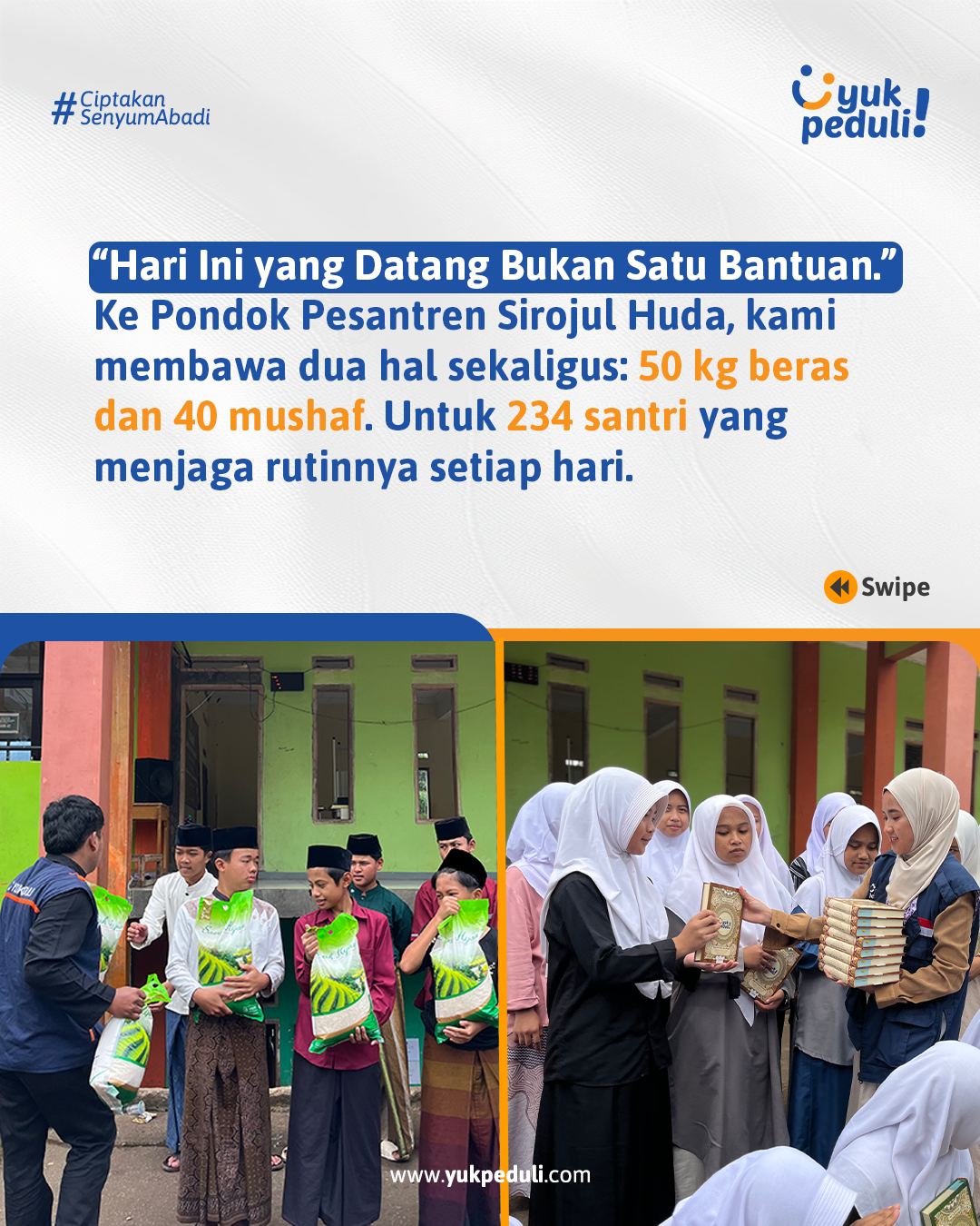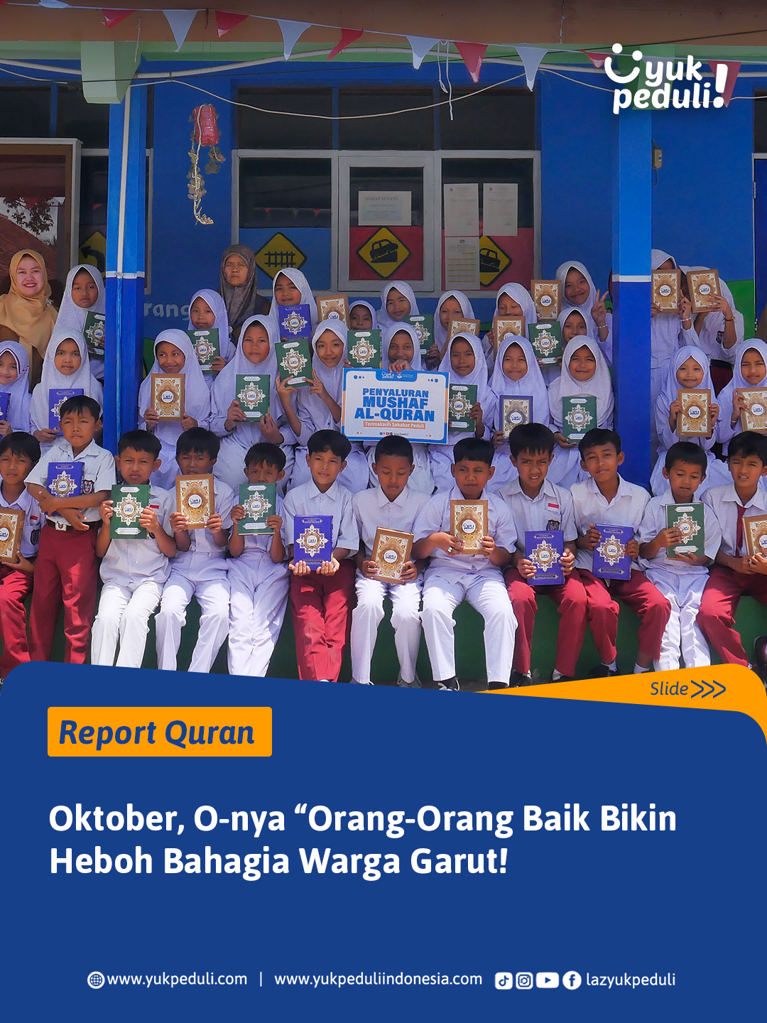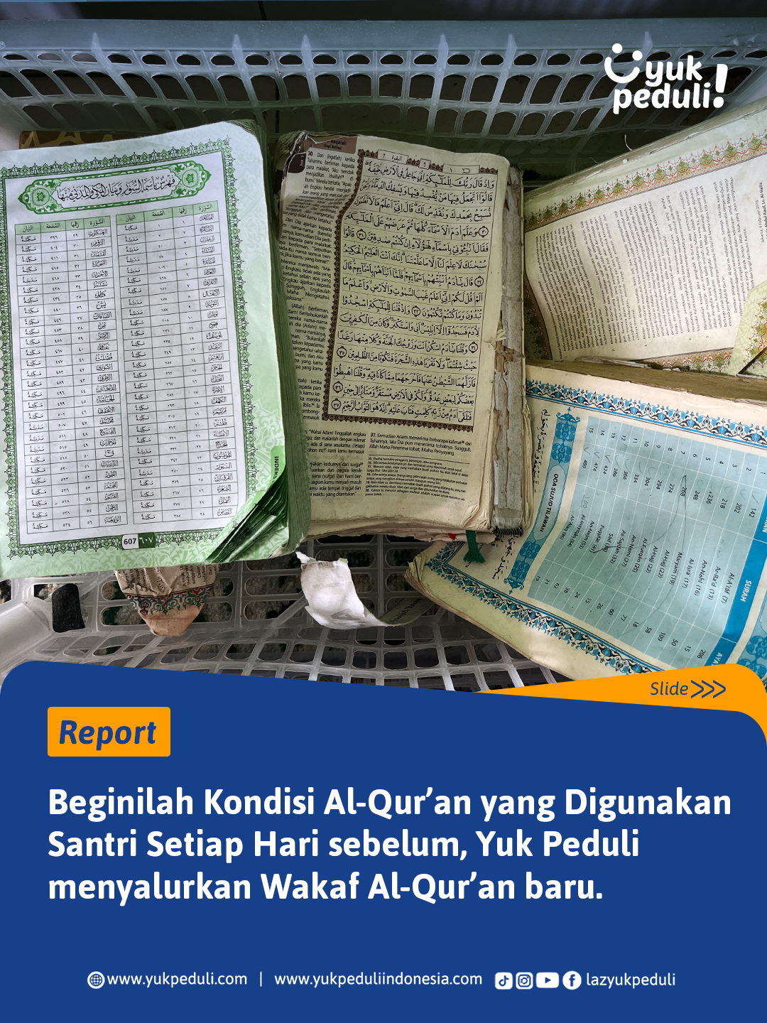 Oleh sebab itu, kami mengajak #SahabatPeduli untuk ikut bersedekah Al-Qur'an bagi para santri penghafal Al-Quran ke pelosok daerah Indonesia.